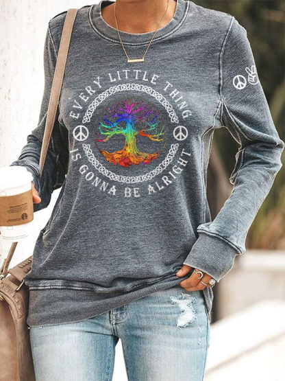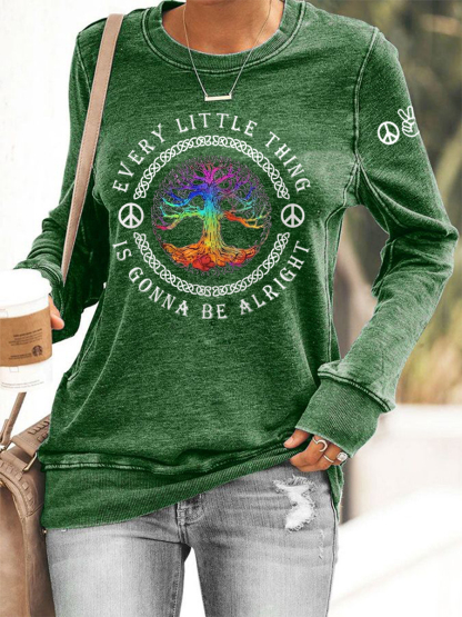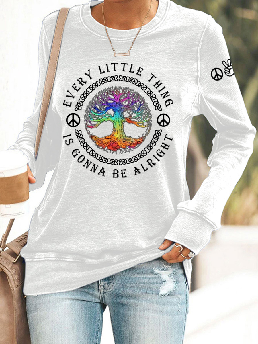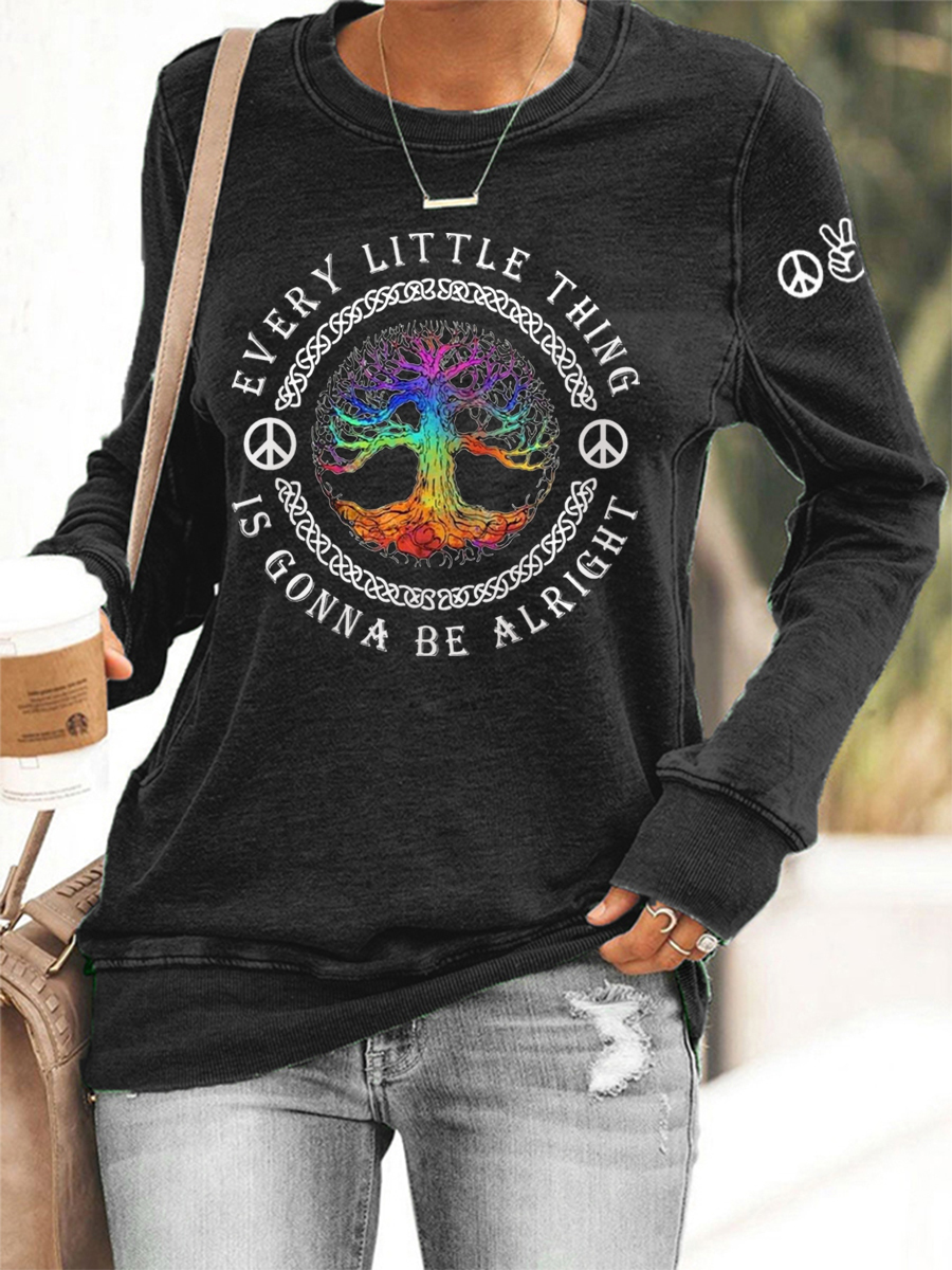 Women's Every Little Thing Is Gonna Be Alright Hippie Print Casual Sweatshirt