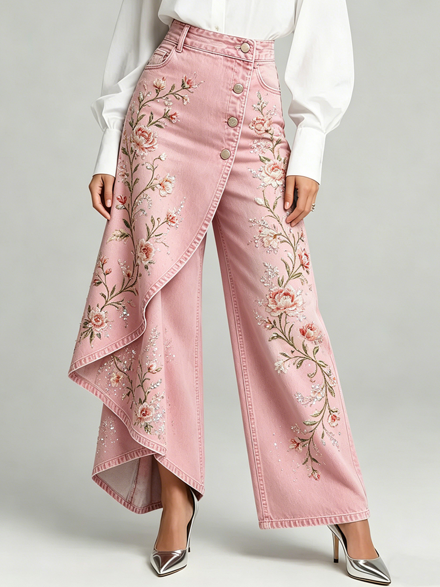 Women's Flower Art Print Trousers