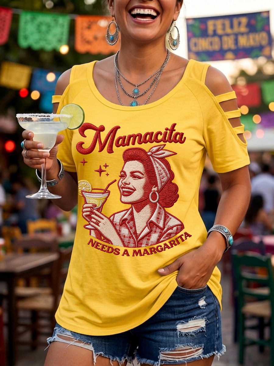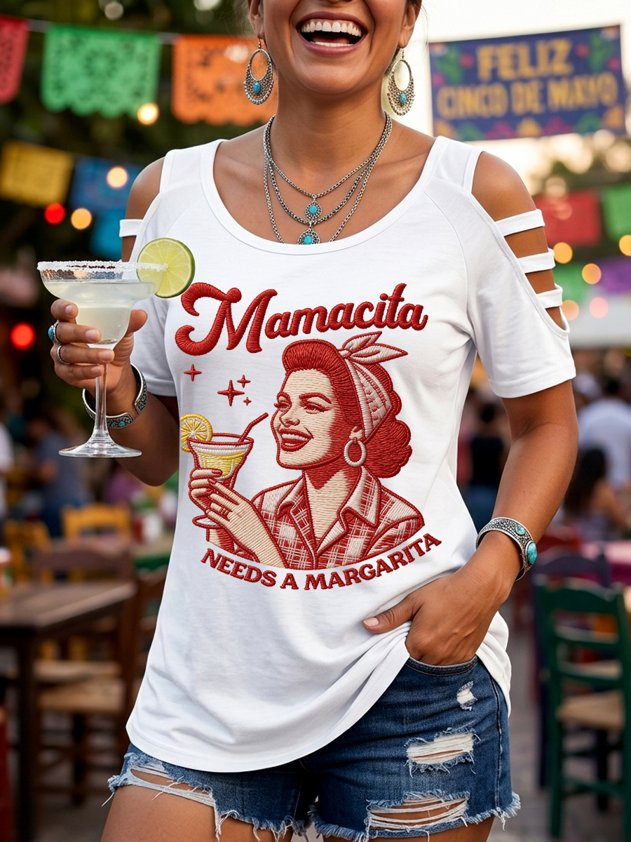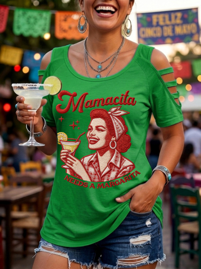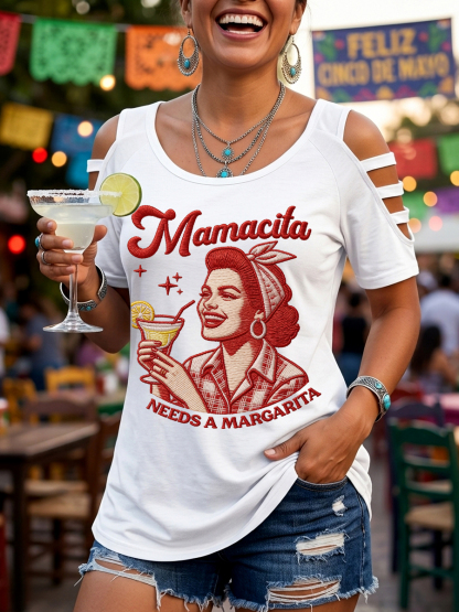 Women's Funny Mamacita Needs A Margarita Cinco de Mayo Print Casual Top