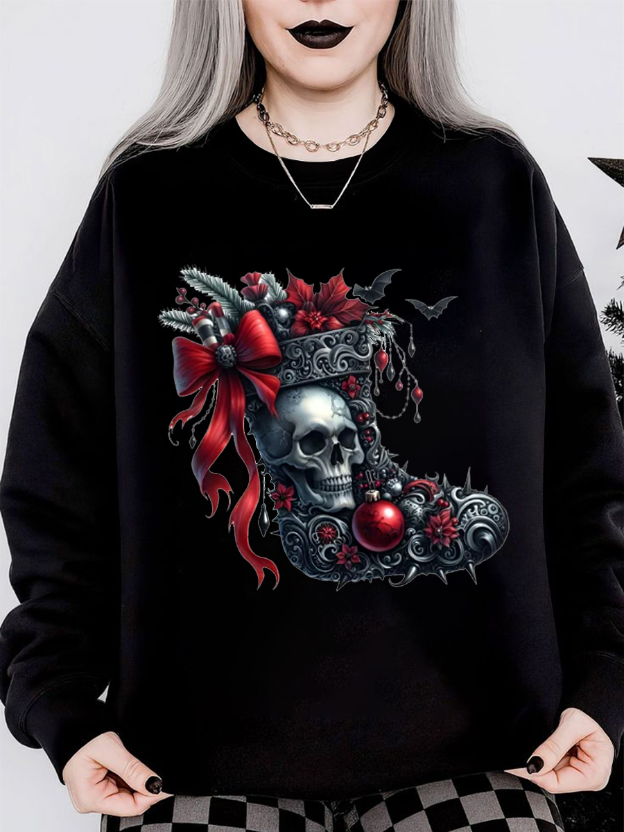 Women's Gothic Christmas Hat Printed Long Sleeve Round Neck Sweatshirt