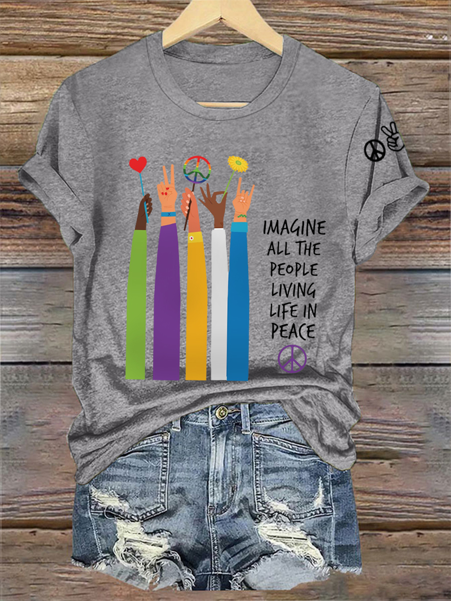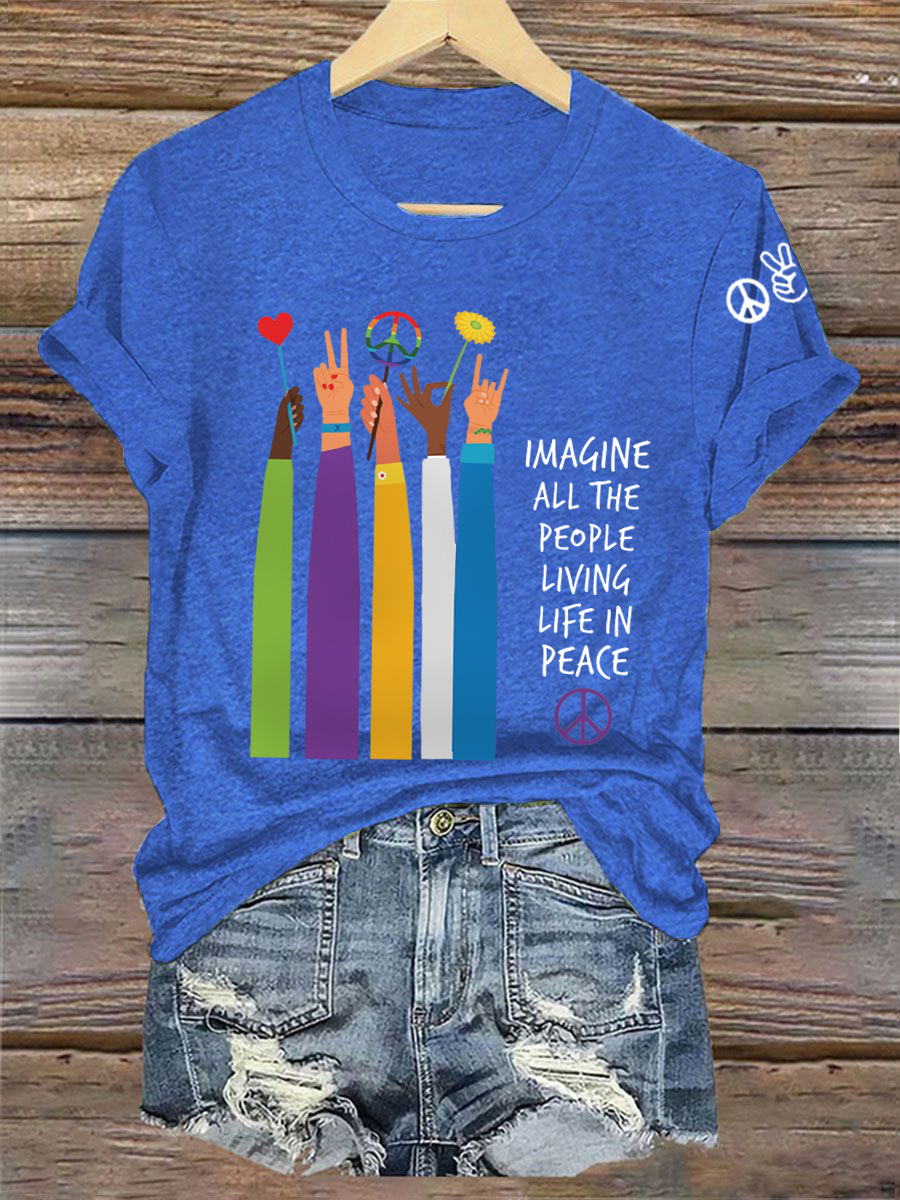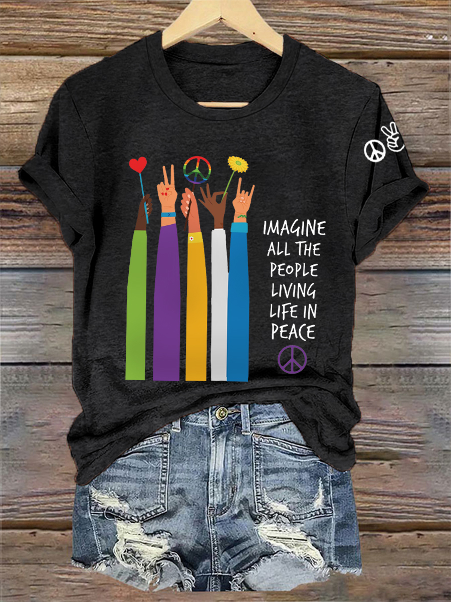 Women's Imagine All The People Living Life In Peace Casual Tee