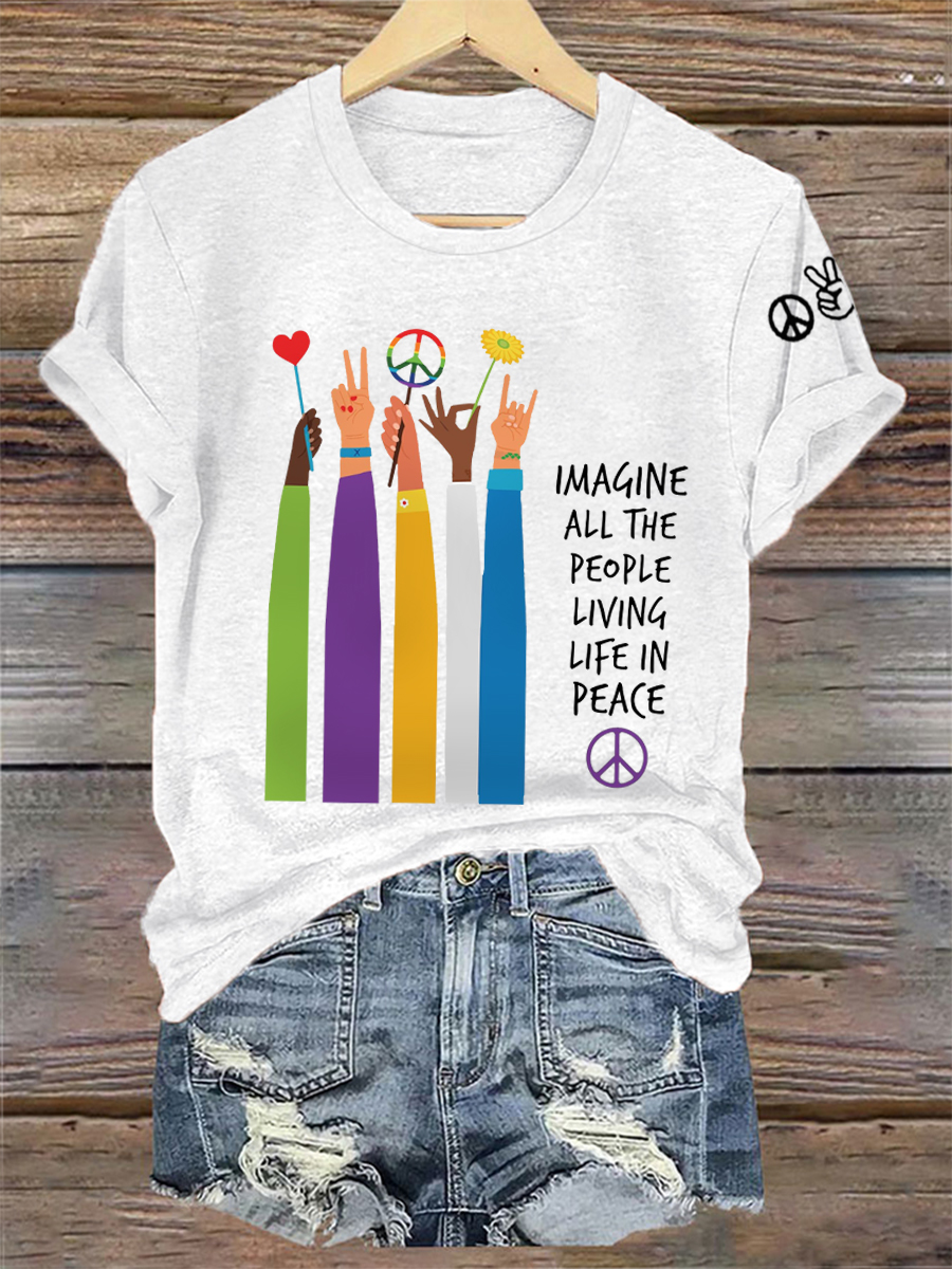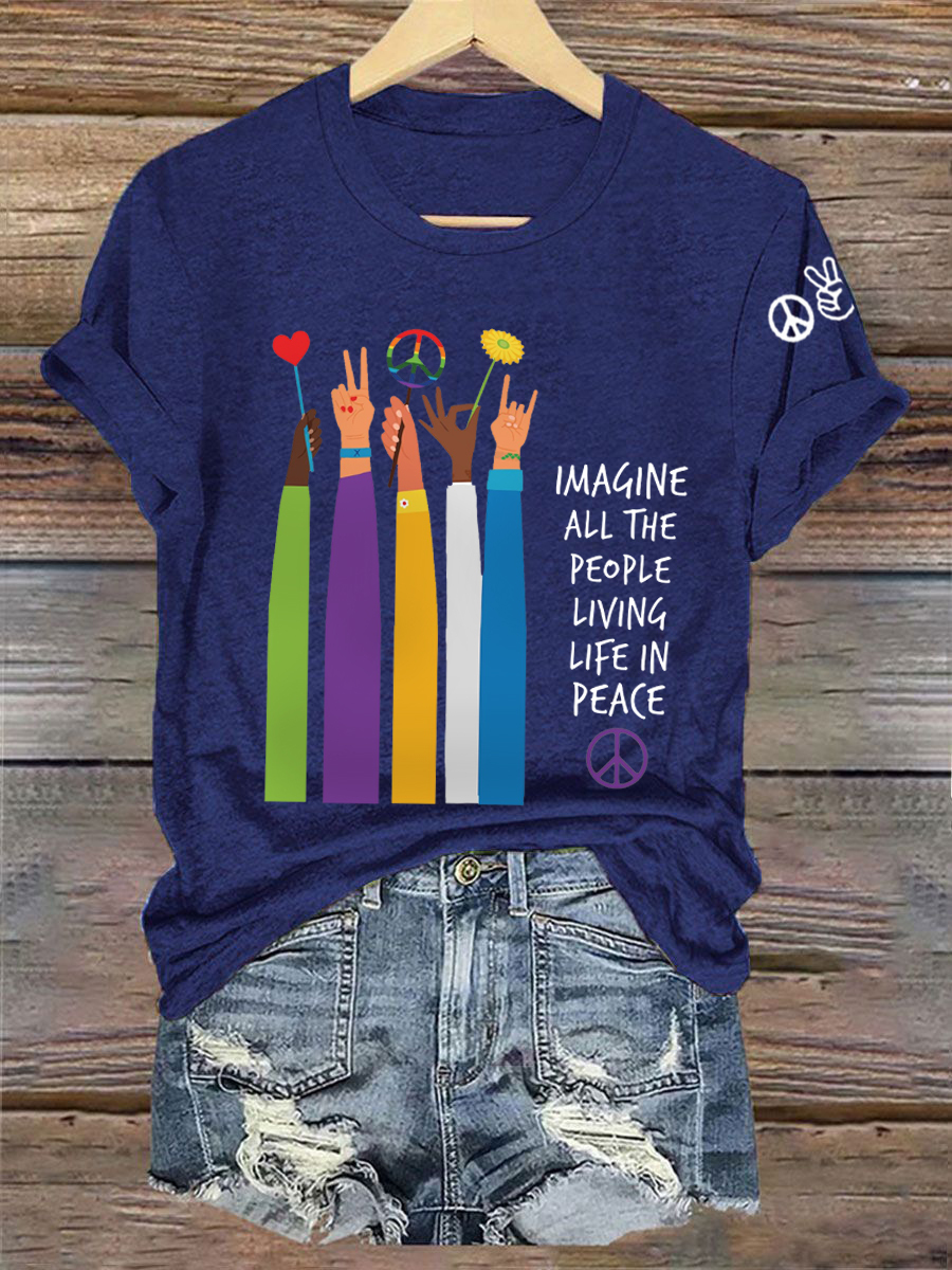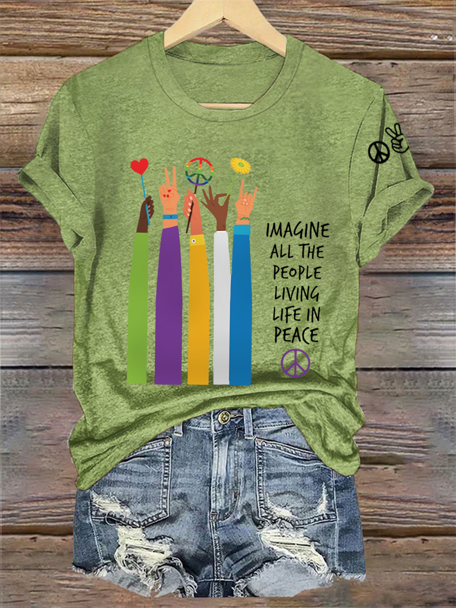 Women's Imagine All The People Living Life In Peace Casual Tee
