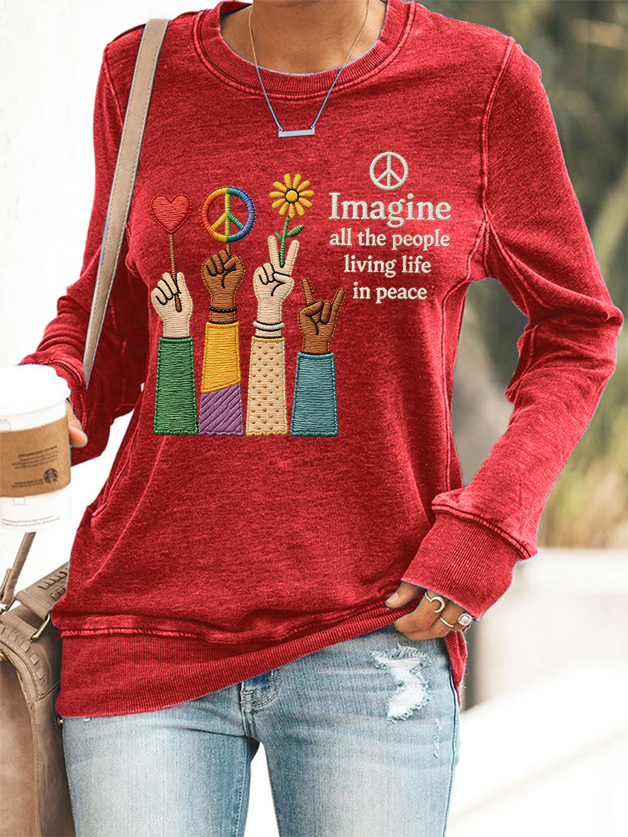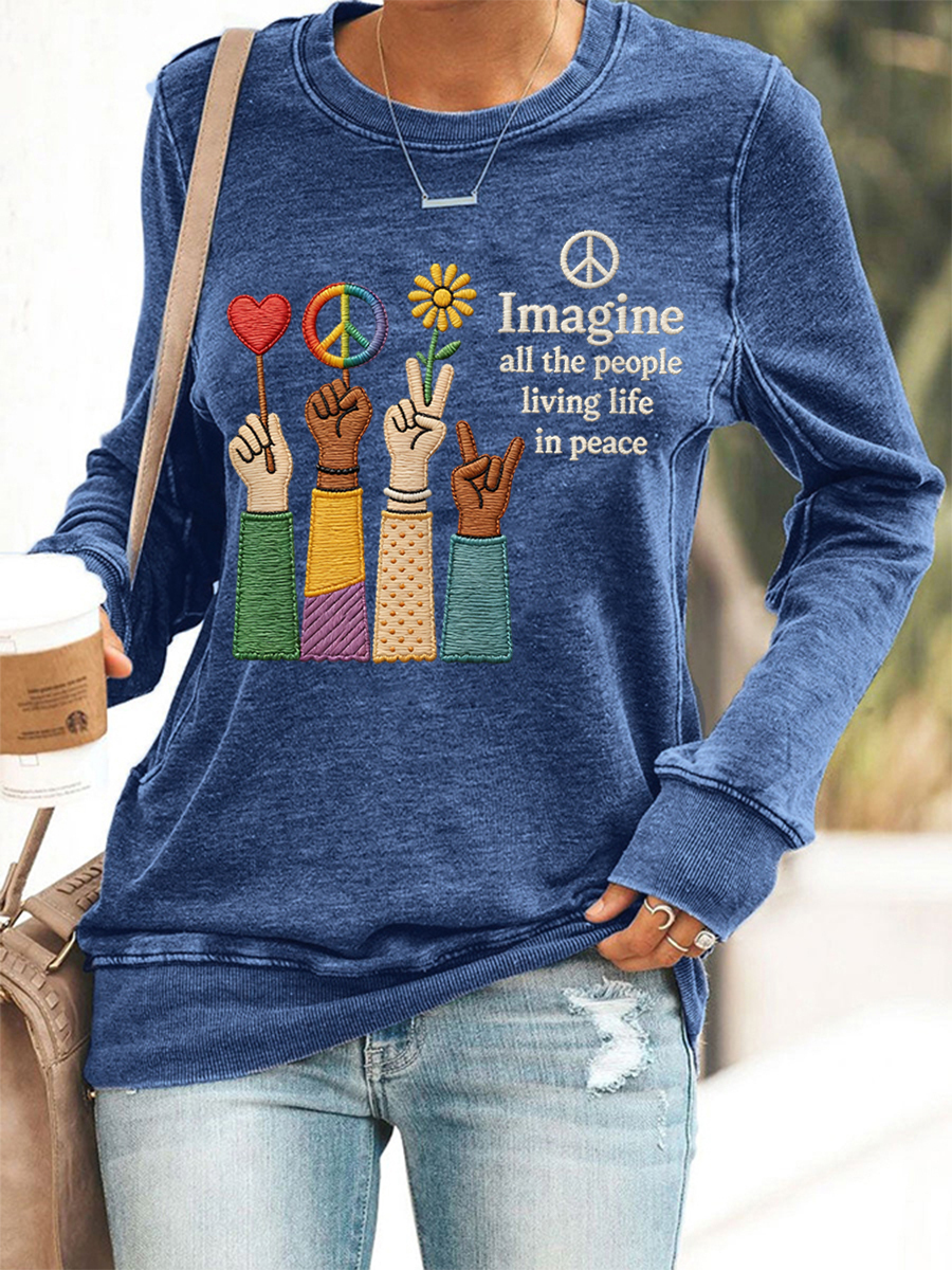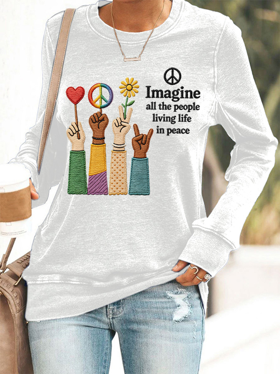 Women's Imagine All The People Living Life In Peace Print Sweatshirt