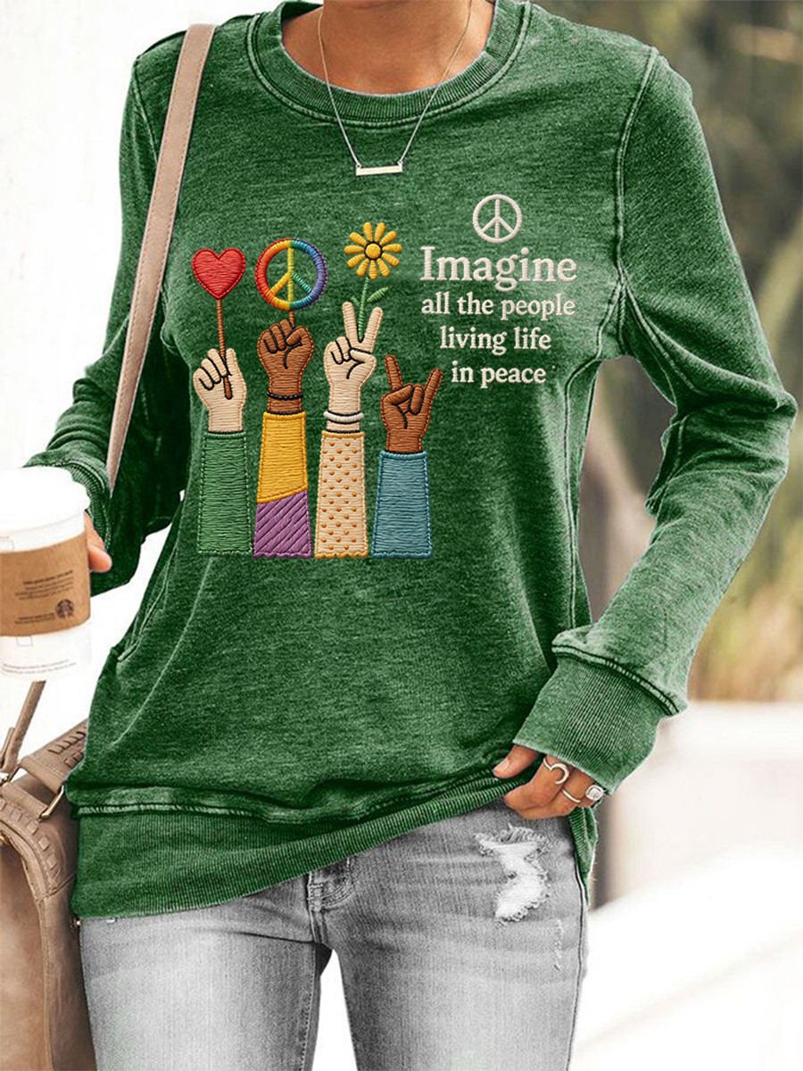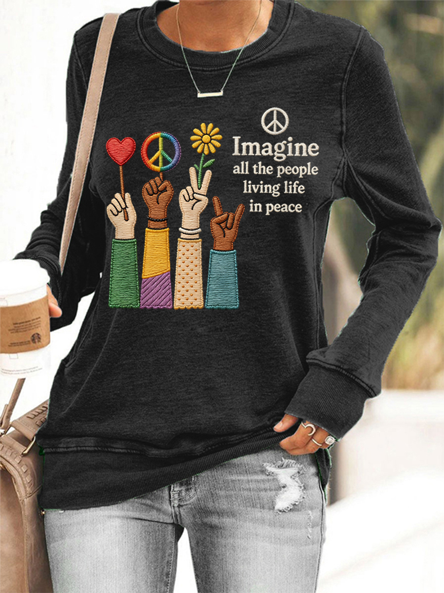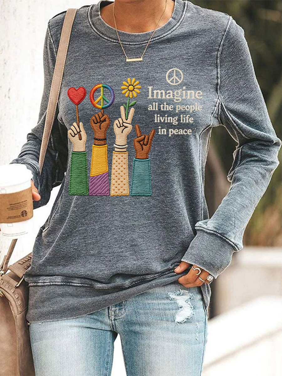 Women's Imagine All The People Living Life In Peace Print Sweatshirt