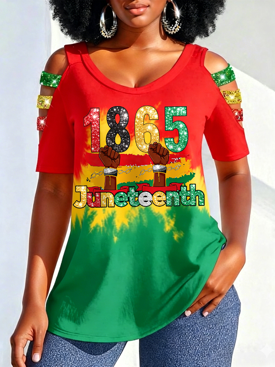 Women's Juneteenth 1865 Print Casual Hollow Sleeves Top