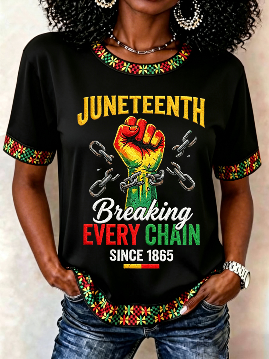 Women's Juneteenth Breaking Every Chain Since 1865 Print Casual Tee