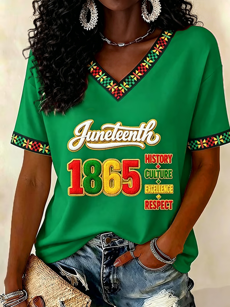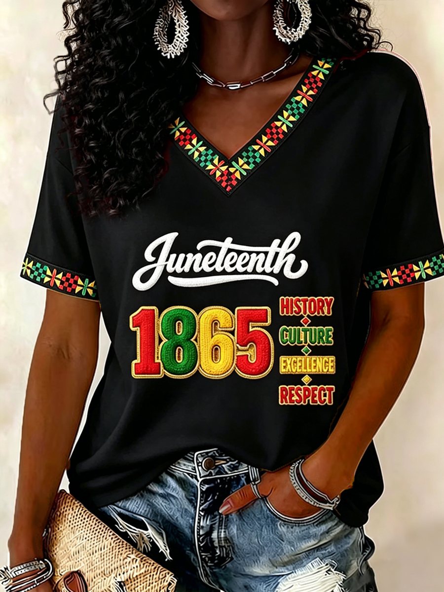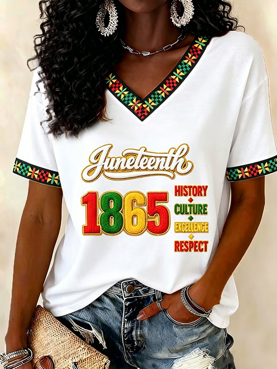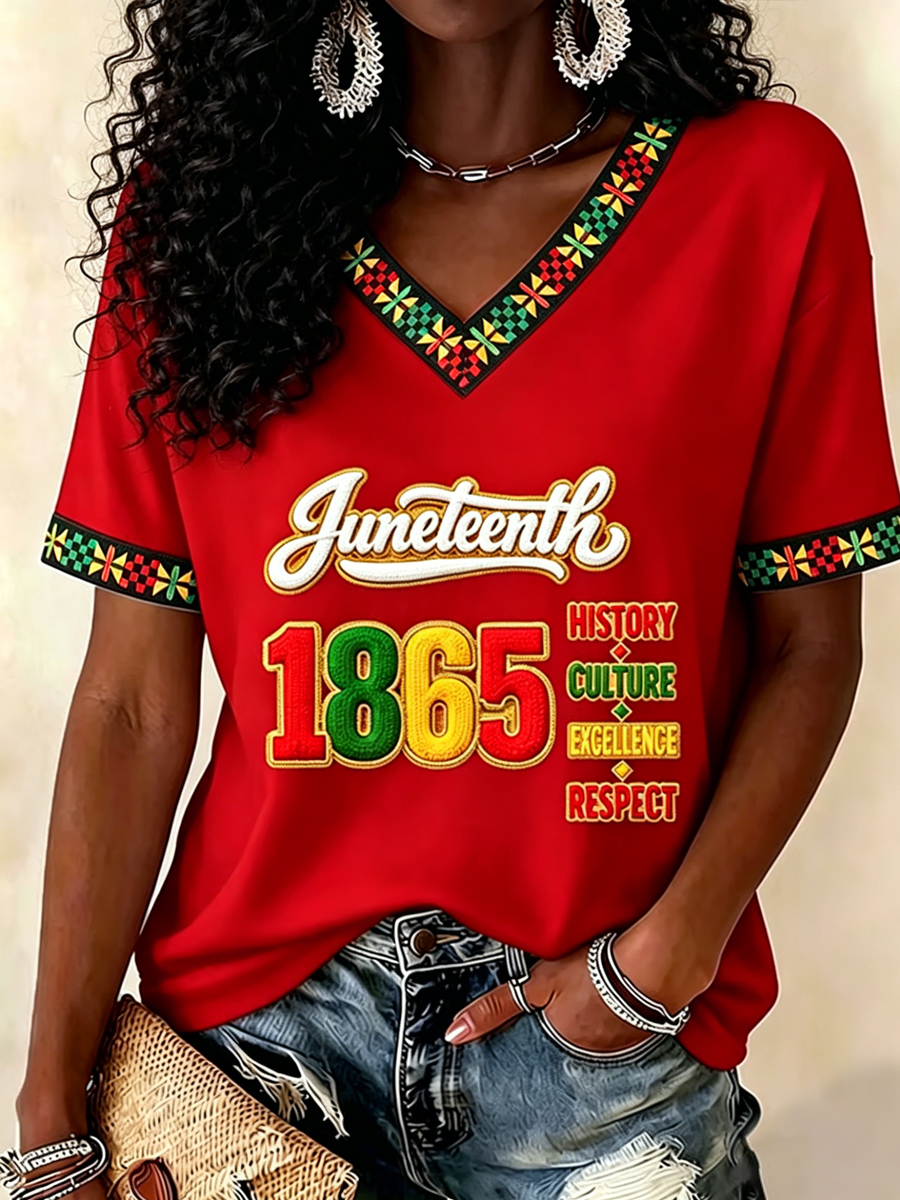 Women's Juneteenth Print Casual V-Neck Tee