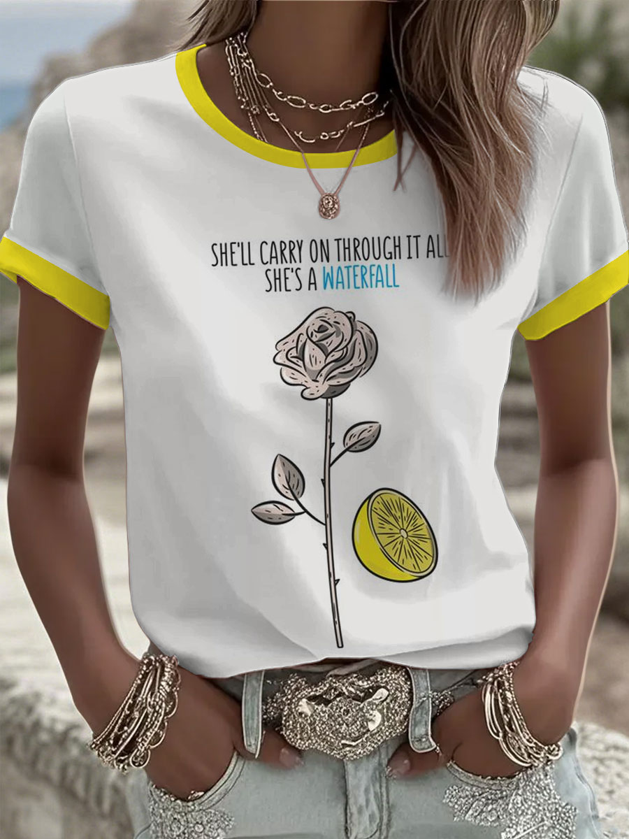 Women's Lemon Roses Music Lover Printed short-sleeved T-shirt