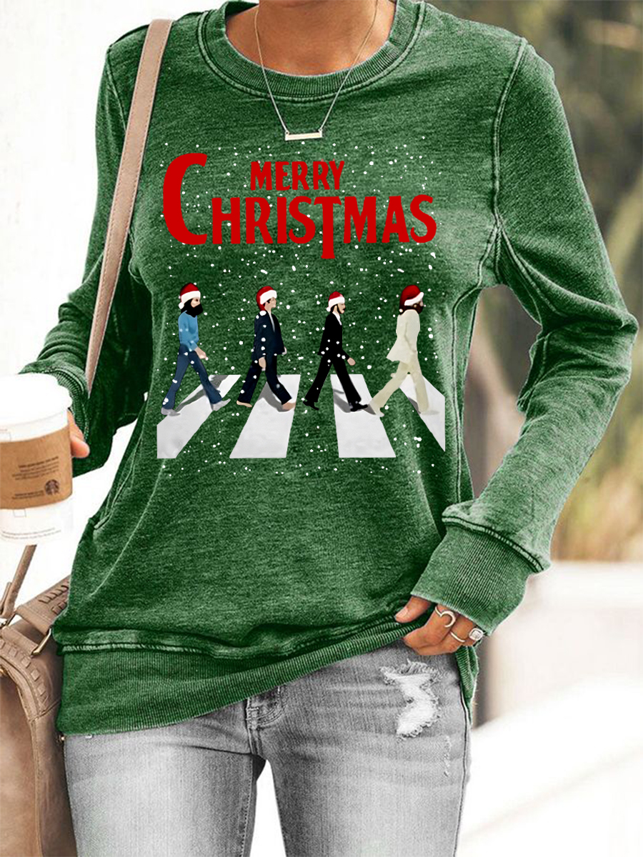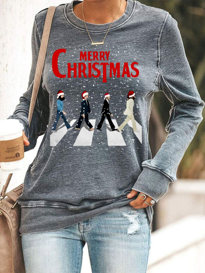 Women's Merry Christmas Retro Classic Legendary Rock Band Print Casual Sweatshirt
