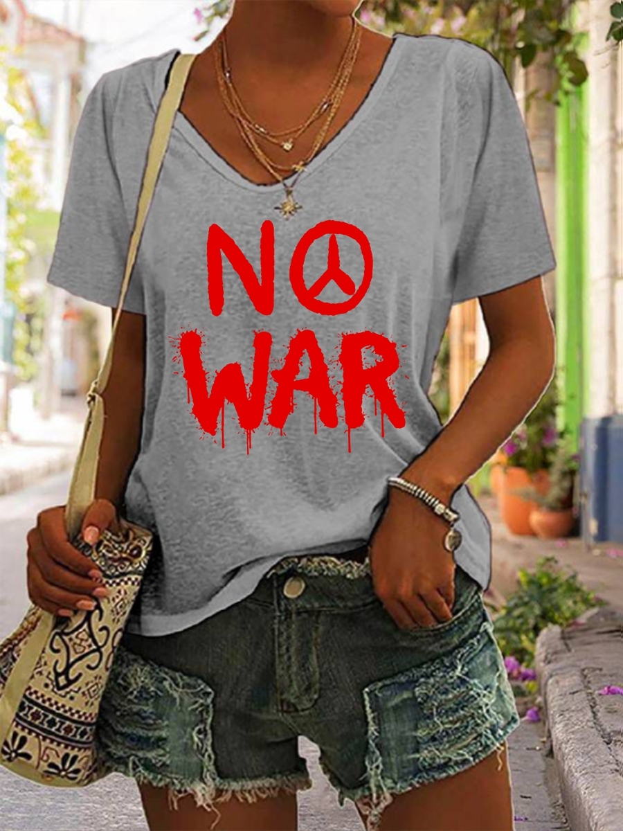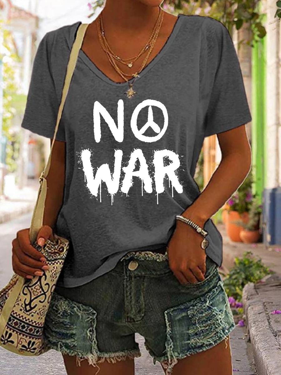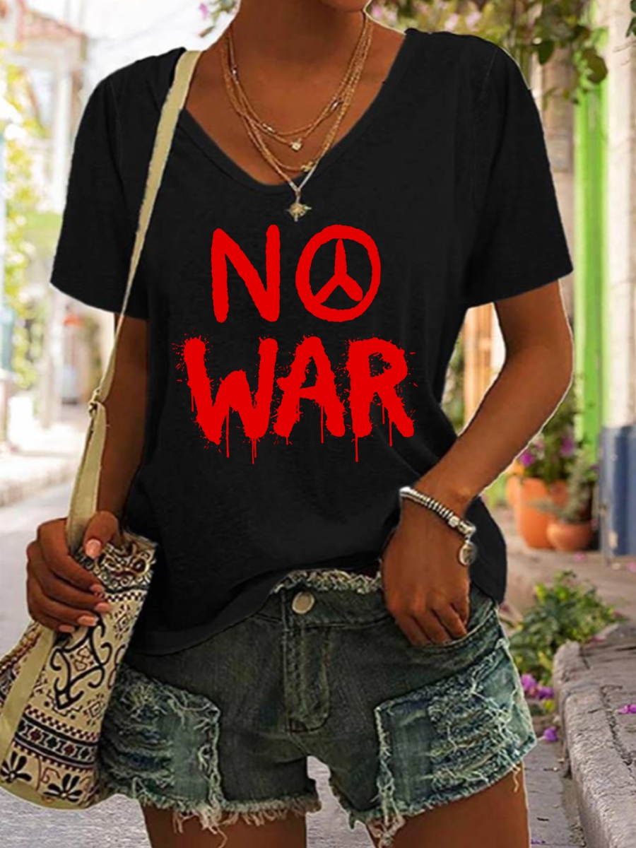 Women's No War cotton V-neck T-shirt