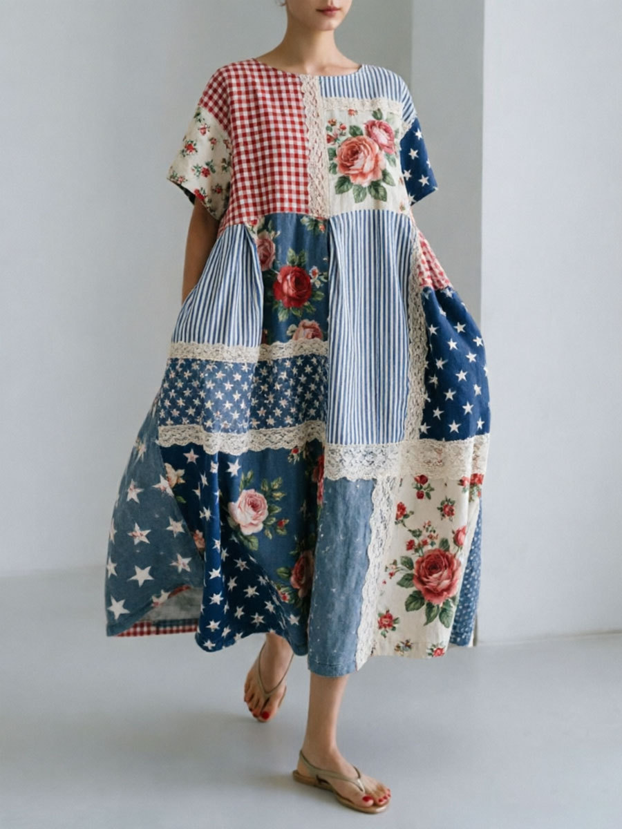 Women's Patchwork Floral Print Casual Dress