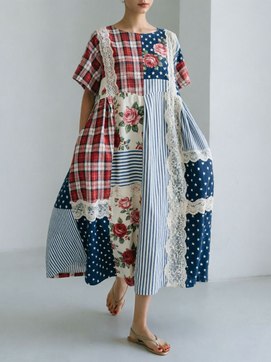 Women's Patchwork Floral Print Casual Dress