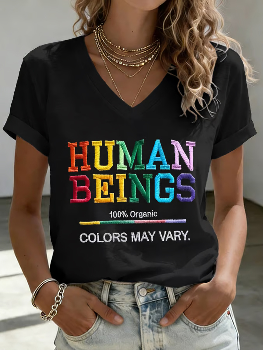 Women's Pride Month Retro Human Beings 100% Organic Colors May Vary Short Sleeve T-Shirt