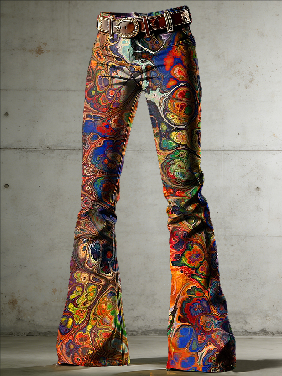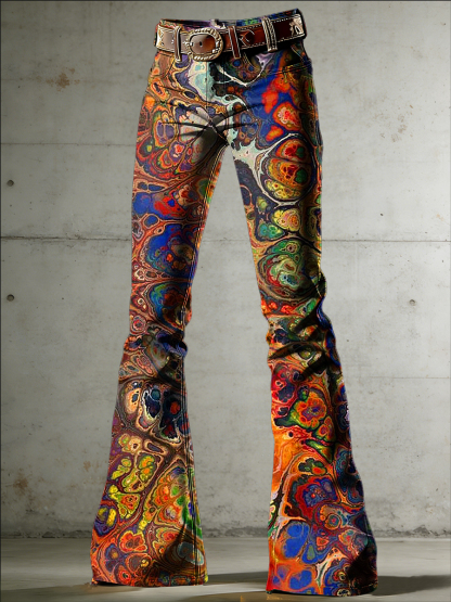 Women's Psychedelic Art Print Flared Trousers