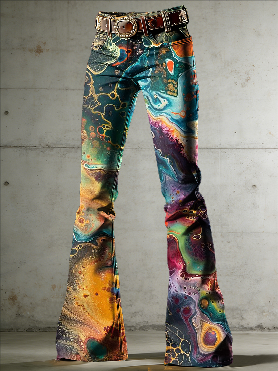 Women's Psychedelic Art Print Flared Trousers