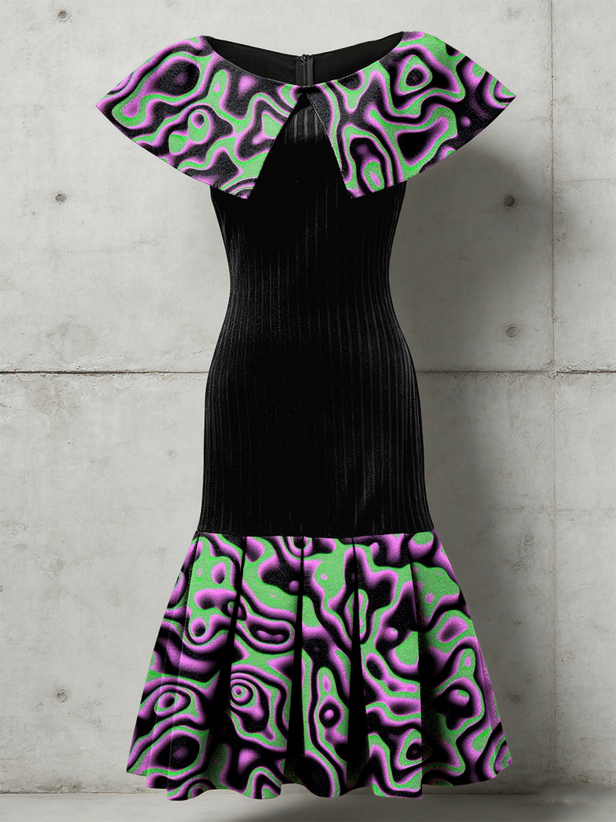 Women's Psychedelic Flowers Art Printed Sleeveless Pleated Dress