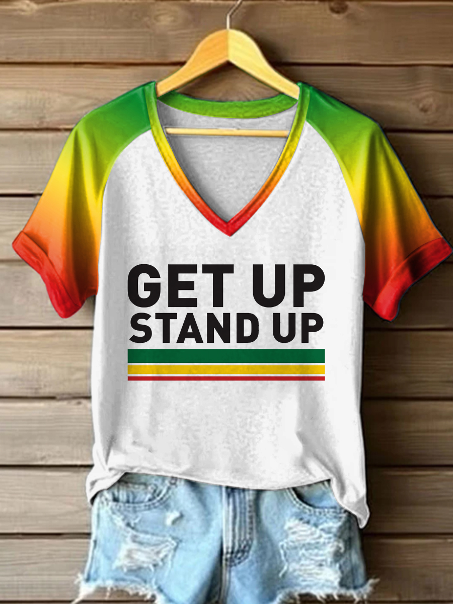 Women's Reggae Printed Vintage Fashion V-Neck Loose Short Sleeve T-Shirt