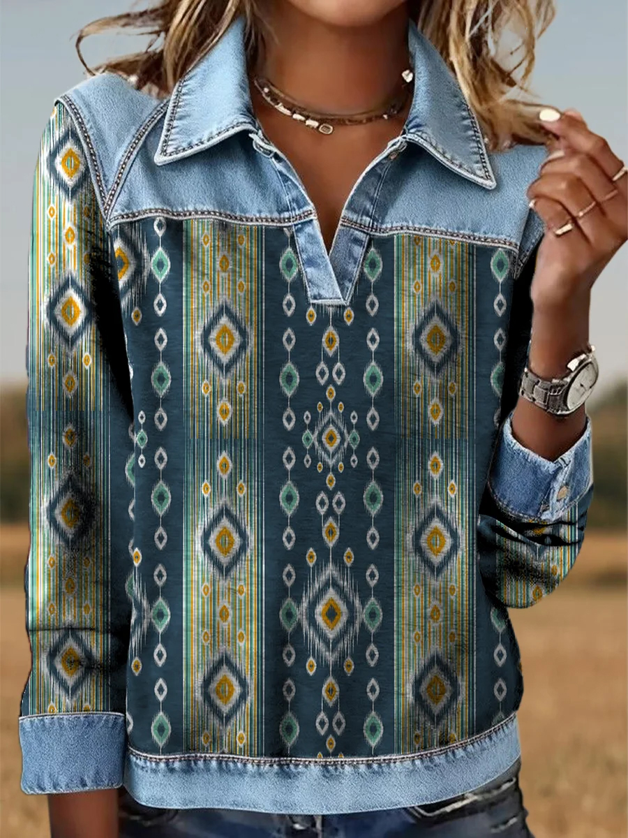 Women's Retro Aztec Print Patchwork Sweatshirt