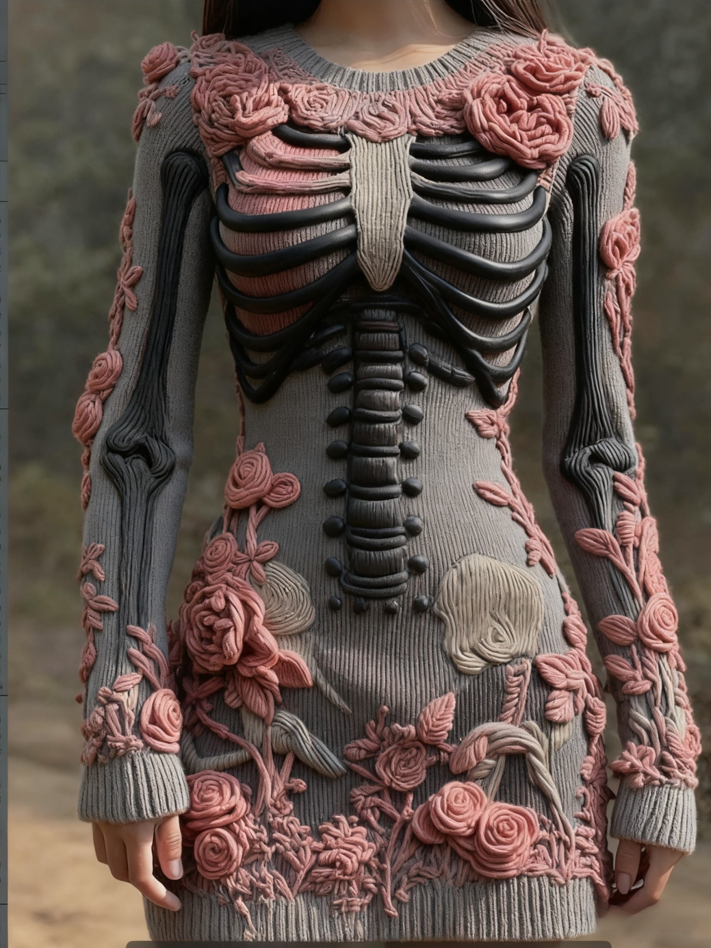Women's Retro Halloween Skull Floral Knitted Dress