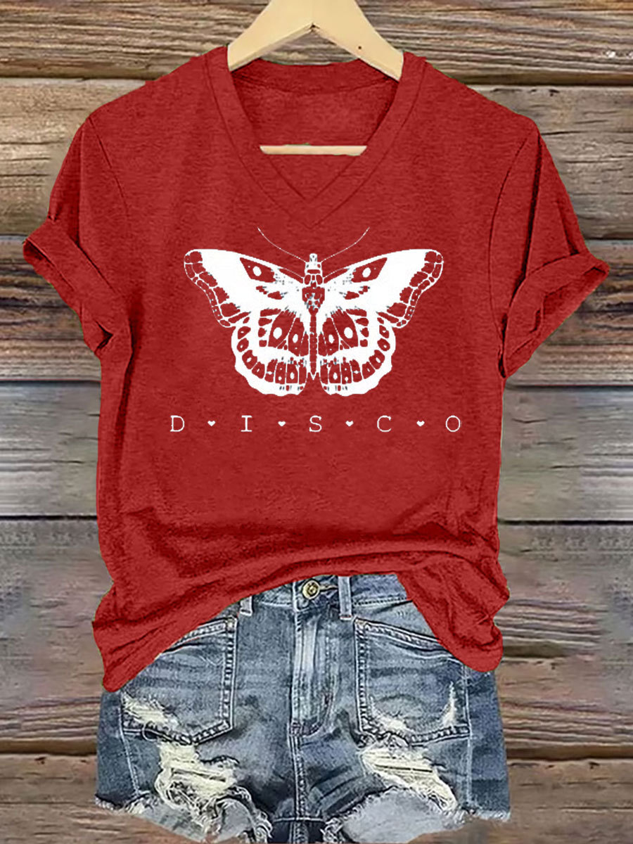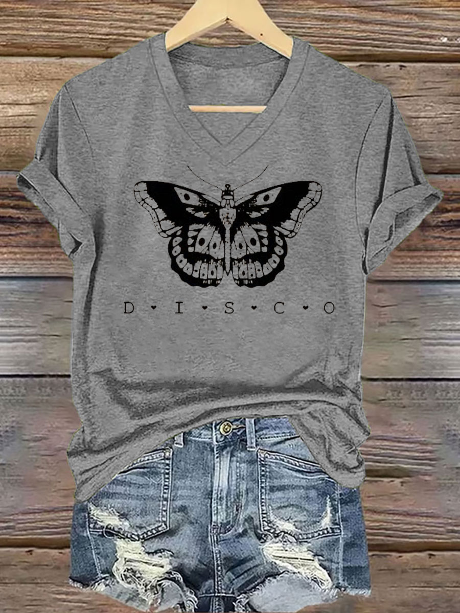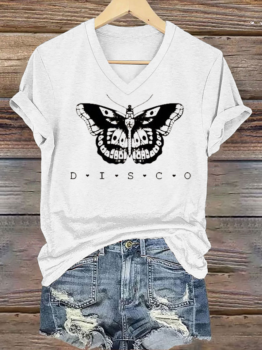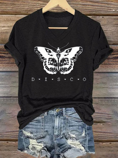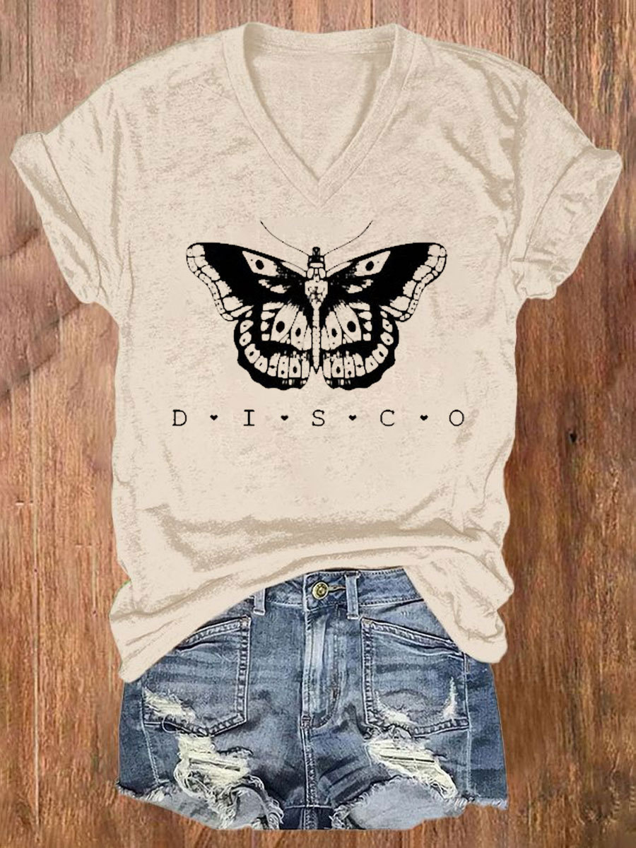 Women's Singer Casual Printed Iron On Short Sleeve T-Shirt
