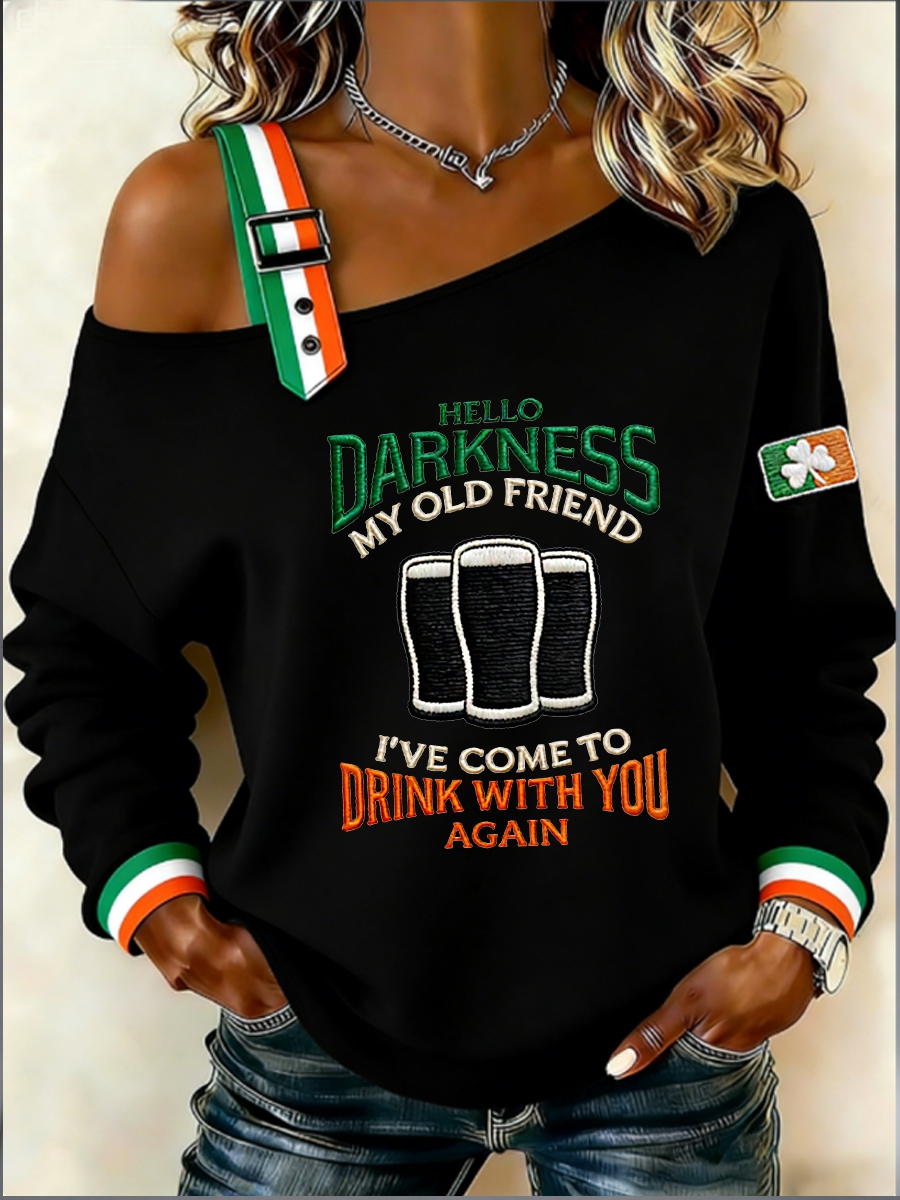 Women's Vintage Cat Patchwork Print Casual Off-Shoulder Sweatshirt