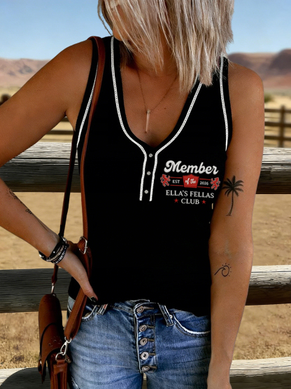 Women's Vintage Ella's Fellas Print Country Music Inspired Vest Top