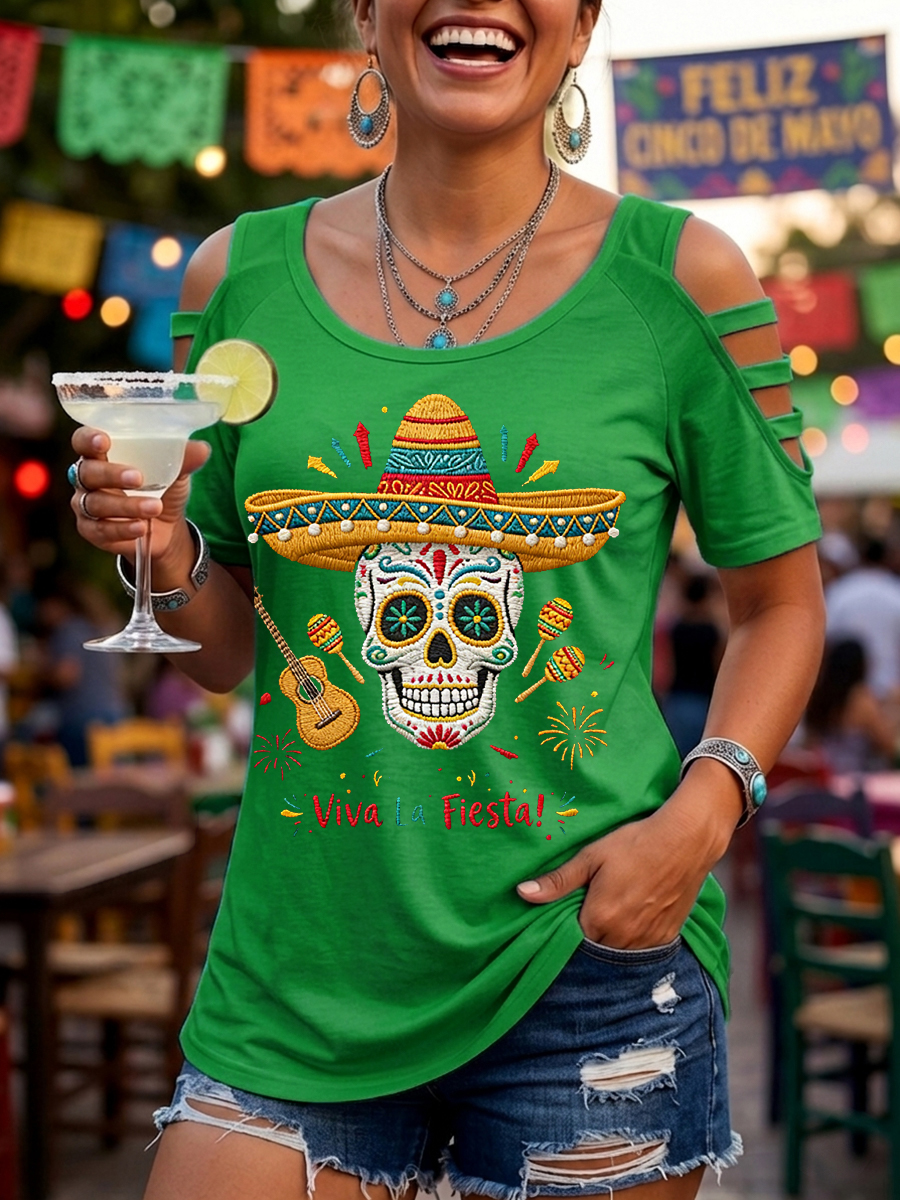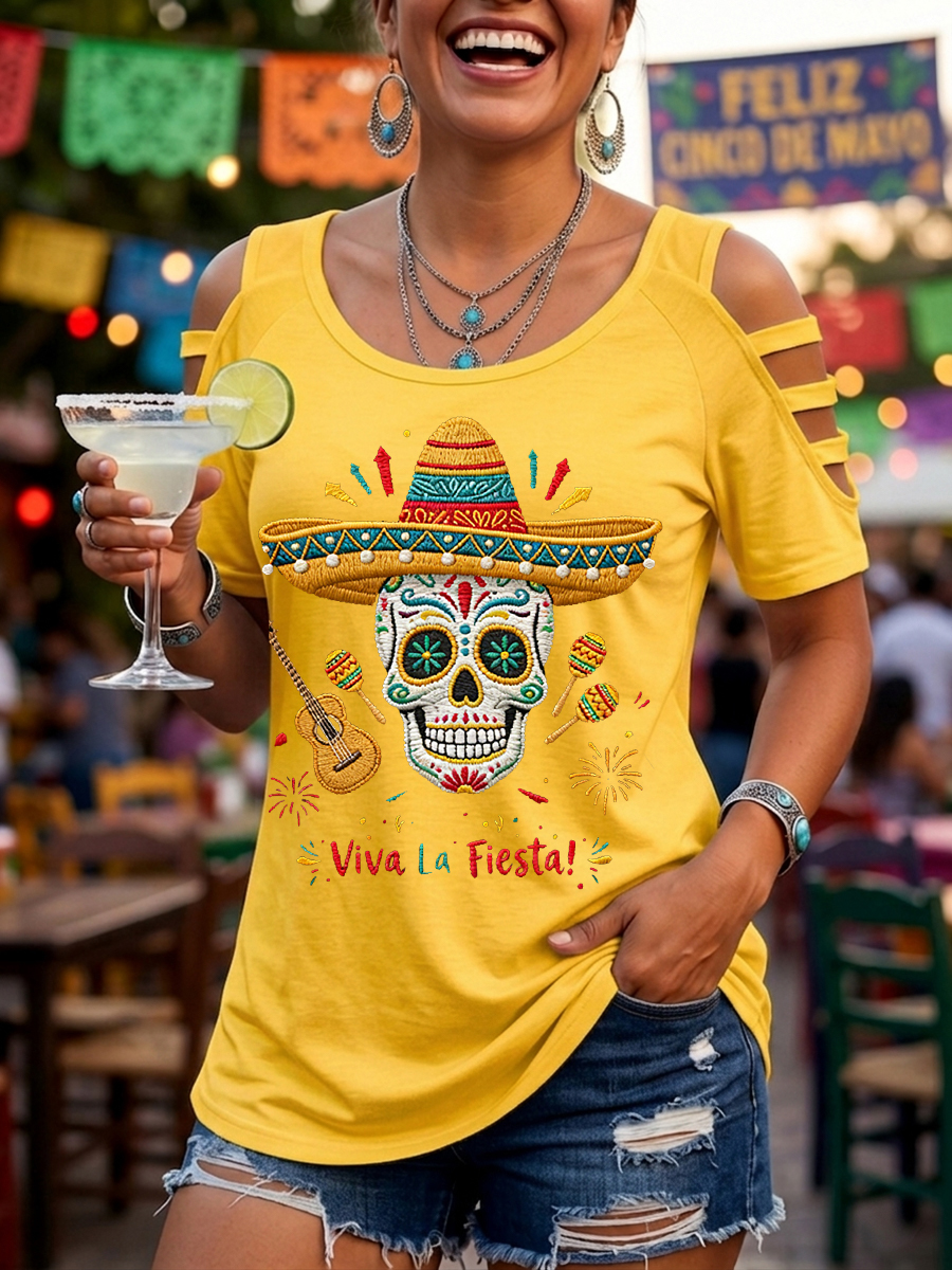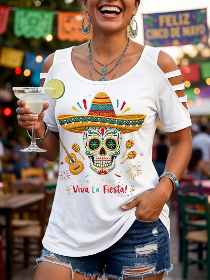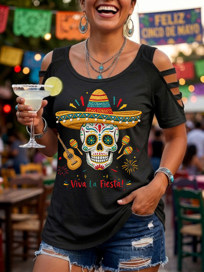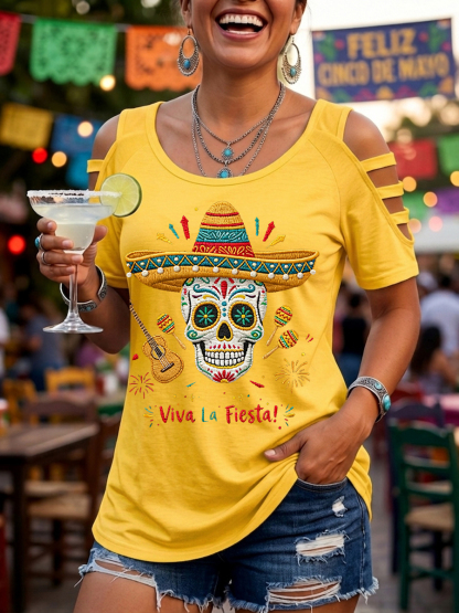 Women's Viva La Fiesta! Skeleton Print Casual Top