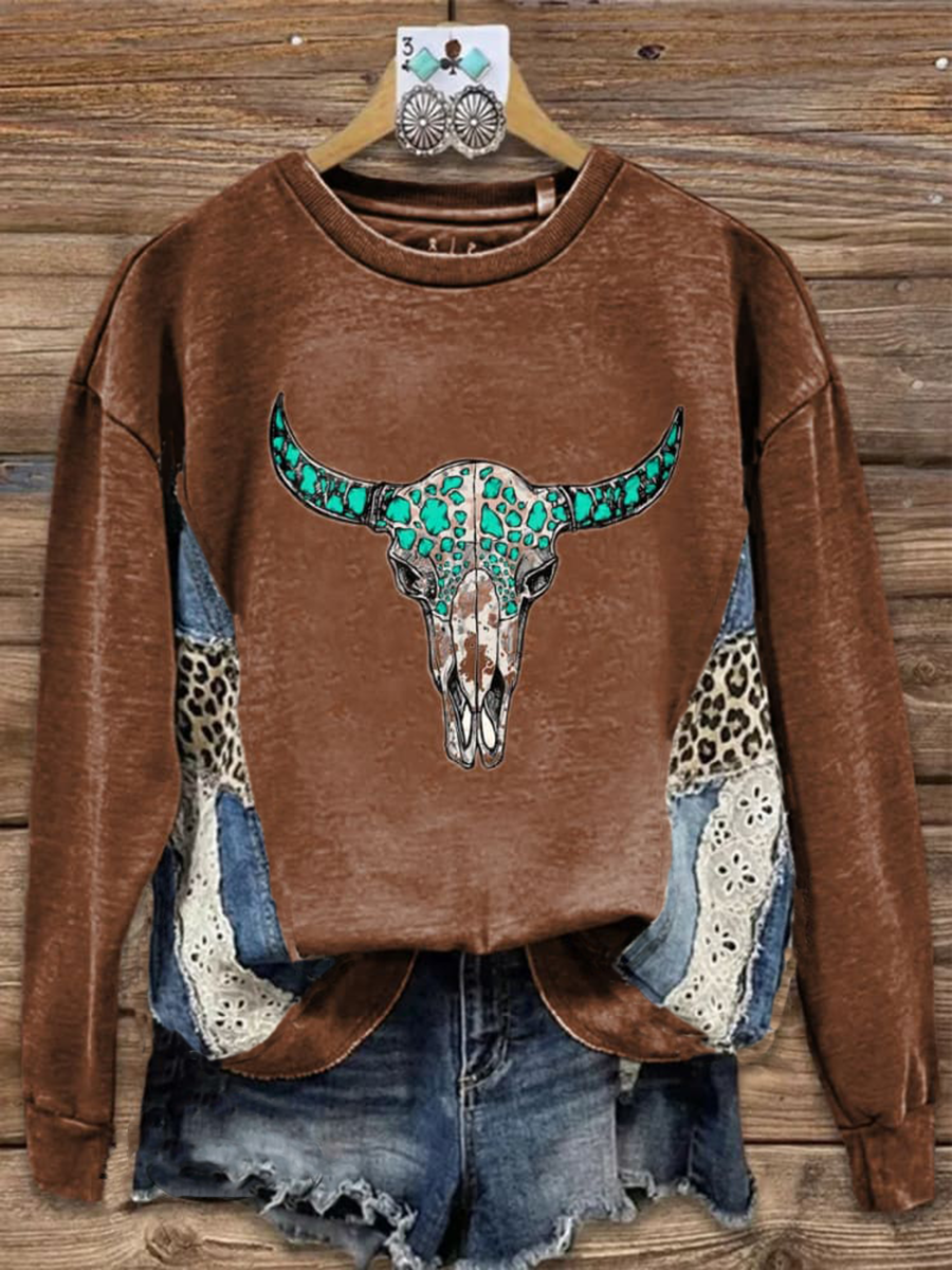 Women's Western Cowboy Skull Print Regular Sweatshirt
