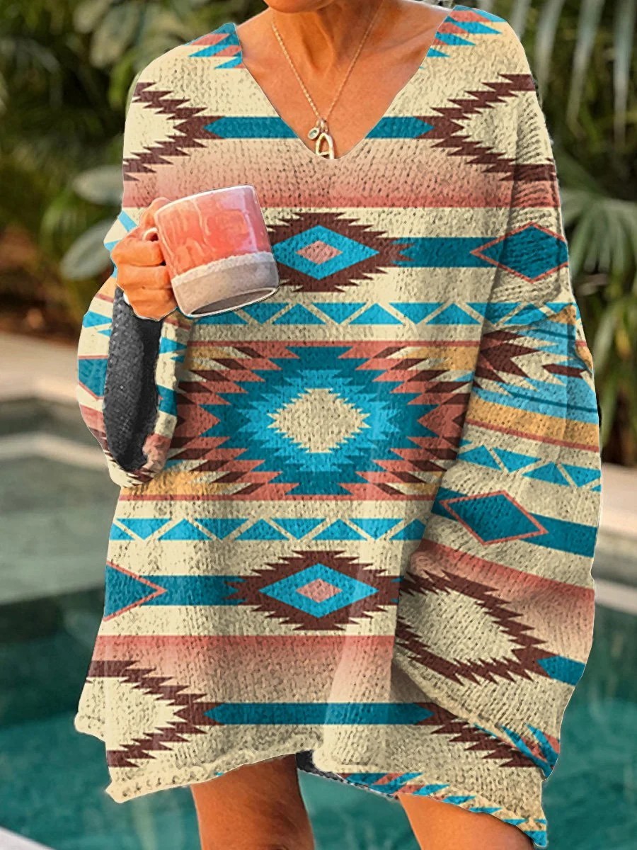 Women's Western Ethnic Aztec Long Sleeve Sweater