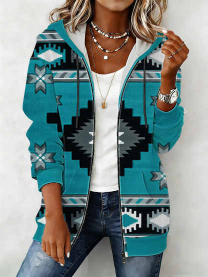Women's Western Print Zip-Up Hoodie