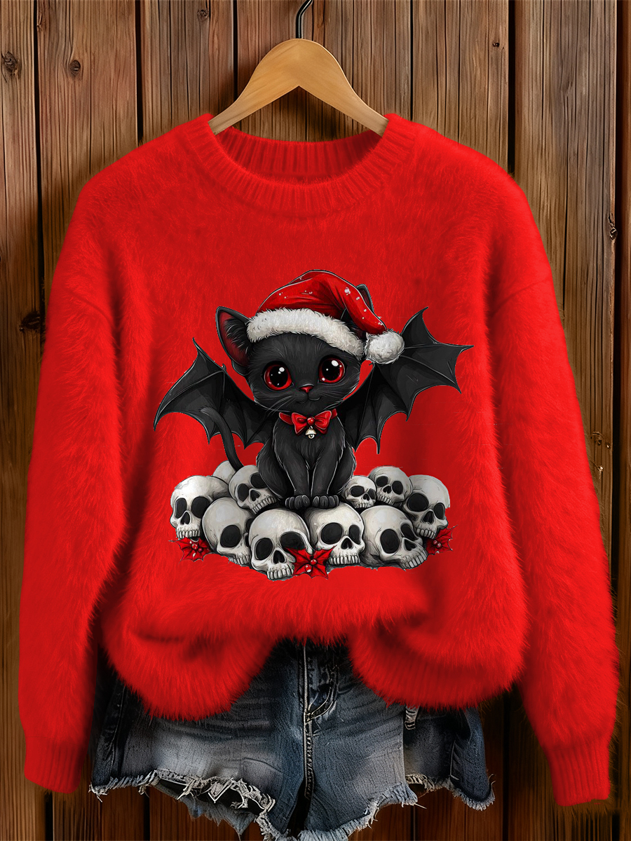 Womens' Goth Christmas Printed Round Neck Comfortable Sweater