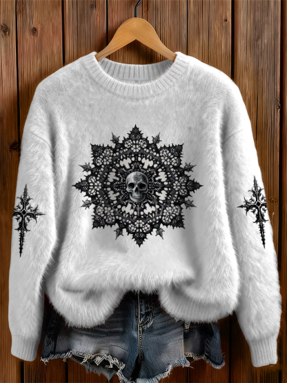 Womens' Gothic Christmas Printed Round Neck Comfortable Sweater