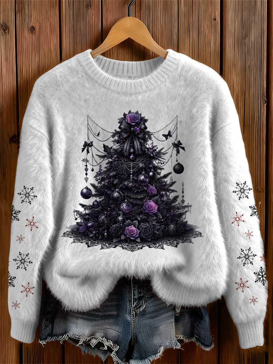 Womens' Gothic Christmas Tree Printed Round Neck Comfortable Sweater