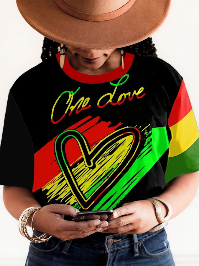 Women's Reggae Music Colorful Symbol Print T-Shirt Top